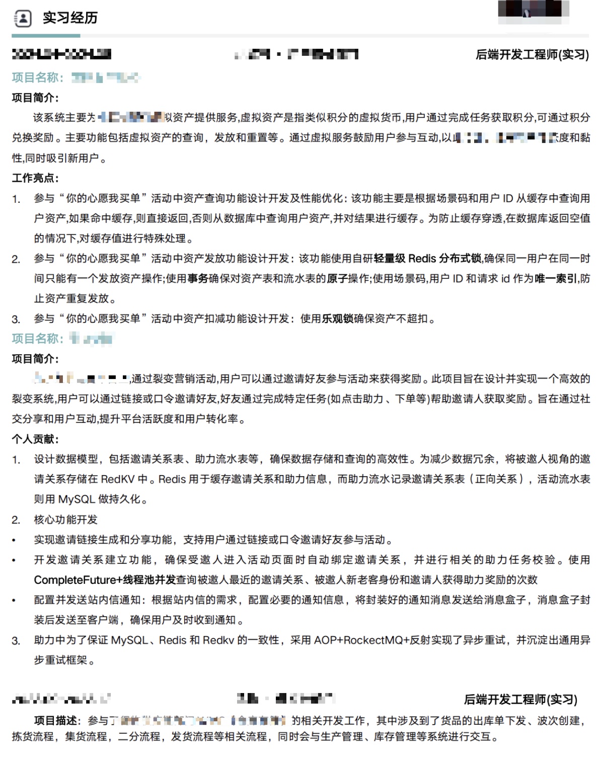 3.卡哥,整体的简历不好的点您客观评价一下呢