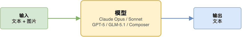 模型的能力边界很清楚:一次推理,输入一段文本,输出一段文本(可能包含工具调用指令)。 你完全可以通过 API 直接调模型——发请求、拿响应、自己处理。很多人早期用 Claude 写代码就是这么干的:把代码贴进 API 请求,让它返回修改后的代码,然后自己复制出来。