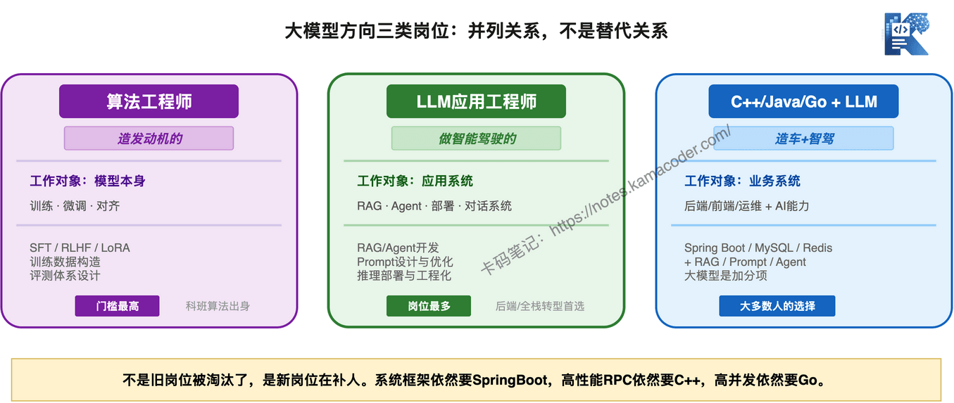 你的本职还是Java后端、C++开发、Go开发,只是现在这些岗位越来越希望你懂大模型。