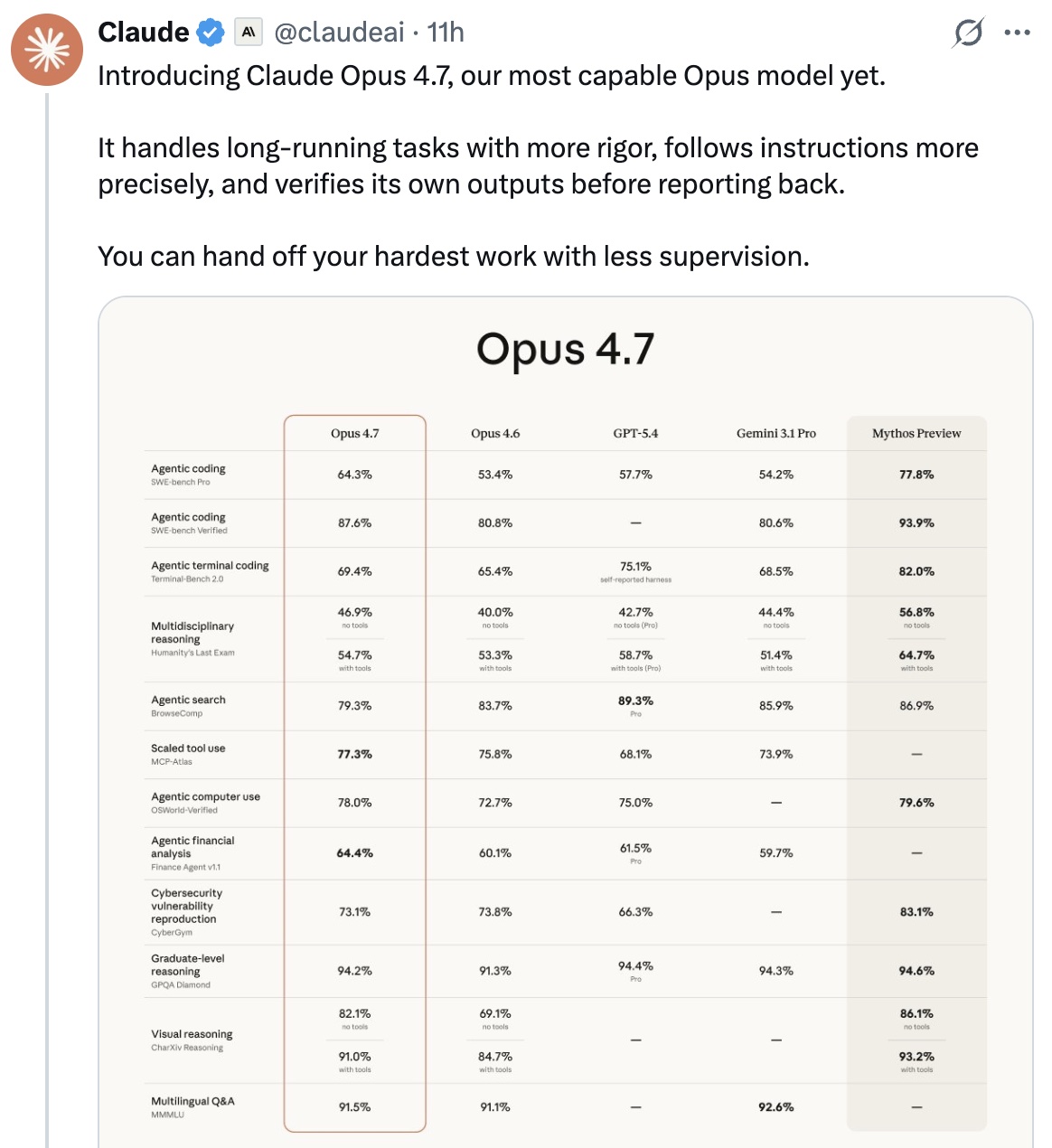 接下来,逐个拆开看看Opus 4.7 更新了啥。
